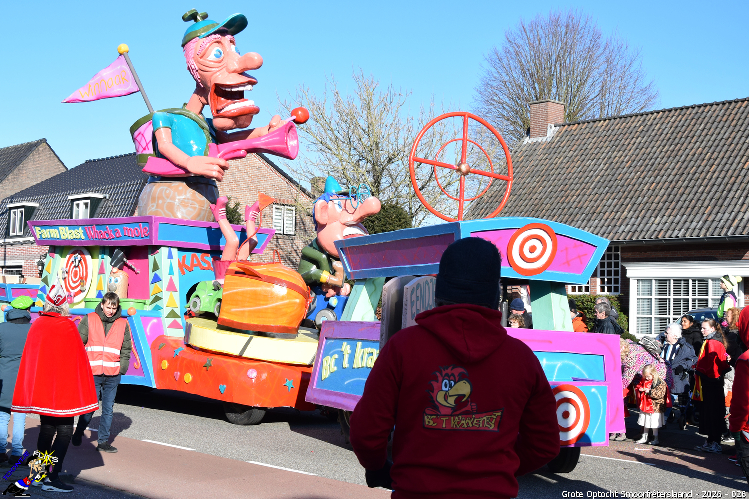 Voor een klein dorp als Bosschenhoofd is de carnavalsoptocht een gebeurtenis waar we met recht trots op mogen zijn. De mix en het aantal van de enkelingen, groepen en wagens maken er elk jaar weer een ongekend spektakel van waar mensen van verre naar komen kijken. Er zijn natuurlijk veel meer foto's gemaakt dan we hier kunnen tonen; deze zijn altijd te bestellen bij Toontje Flits fotografen of via: