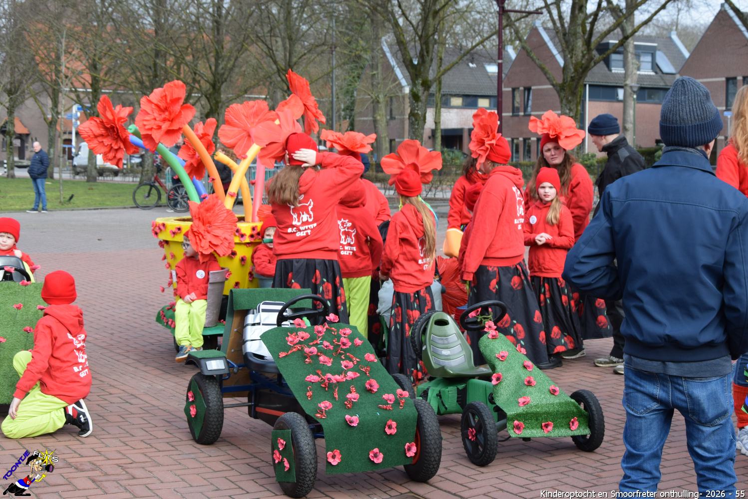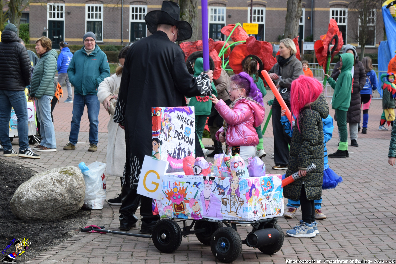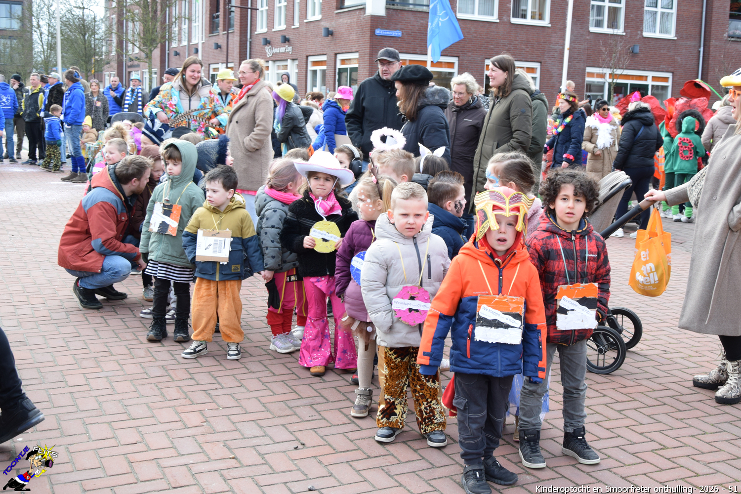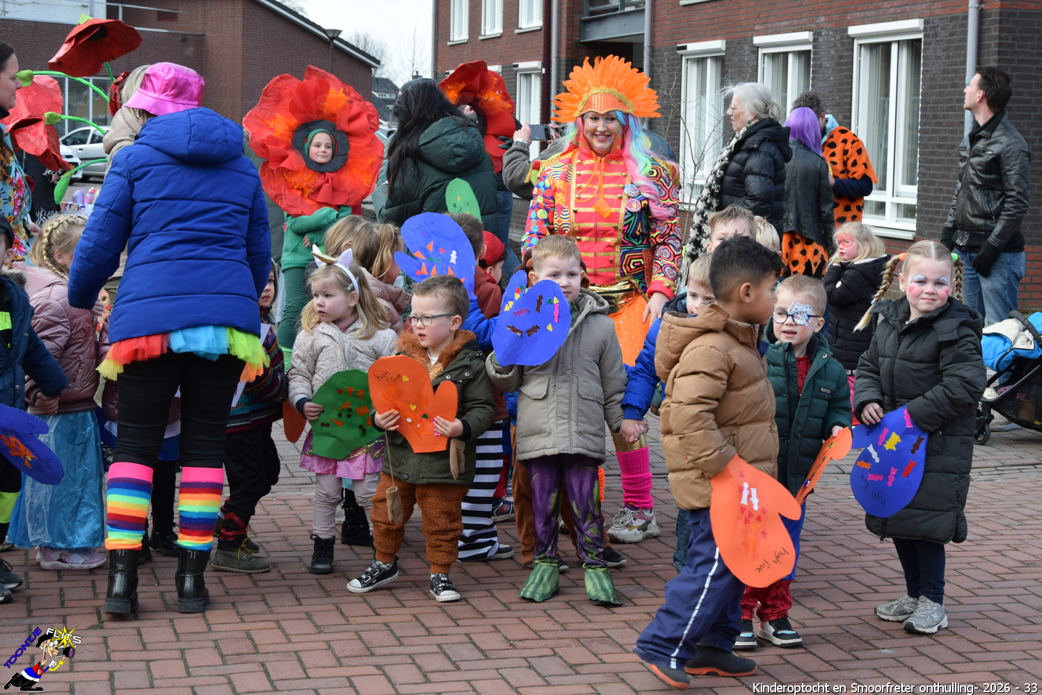 De onthulling van de Smoorfrêter is een jaarlijks terugkerende gebeurtenis in nauwe samenwerking met de lagere school, die tevens wordt gecombineerd met het carnavals schoolbal. De vrijdag voorafgaand aan het carnavalsweekend, ergens in de namiddag, vertrekt vanaf de lagere school de kinderoptocht, waarbij de kinderen hun zelfgemaakte bouwsels aan het publiek kunnen tonen. De kinderoptocht gaat, rumoerig ondersteund door carnavalsmuziek, door enkele straten van ons Smoorfrêterslaand, waarna ze aan het eind van de optocht gewoonlijk aankomen bij het dorpsplein. Hier wacht onze Smoorfrêter, die onherkenbaar is afgedekt door een groot zeil, om officieel geïnstalleerd te worden. Na wat hossen en andere dansjes wordt de Smoorfrêter ceremonieel door de Nar van zijn camouflage ontdaan, zodat hij glorieus over het plein kan uitkijken. Vanaf zijn verhoogde positie kan hij dan zijn eigen Smoorfrêterslaand aanschouwen gedurende de carnavalsdagen.
