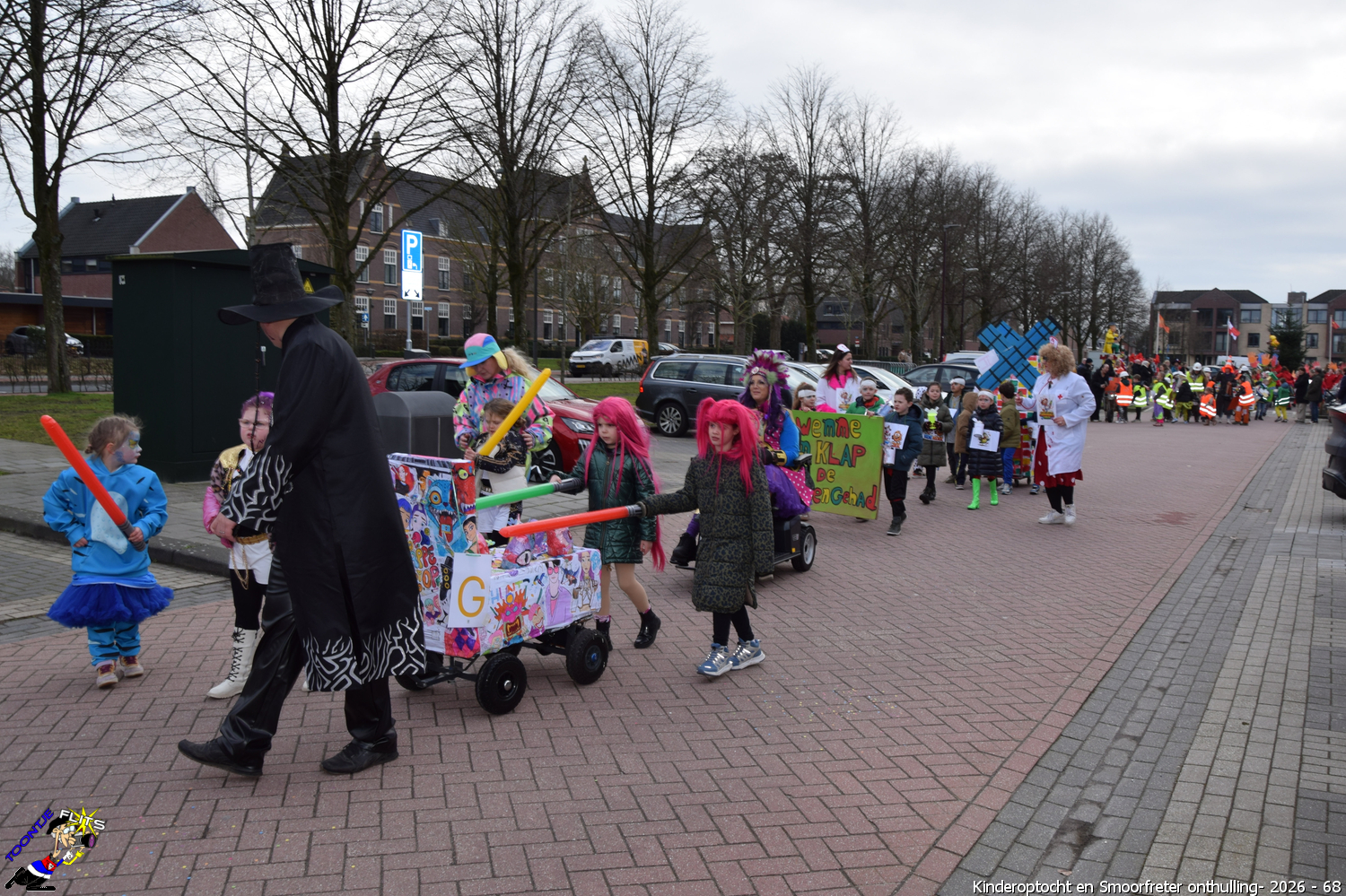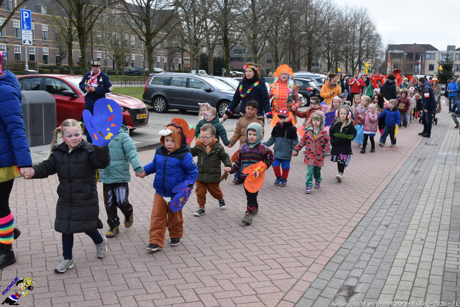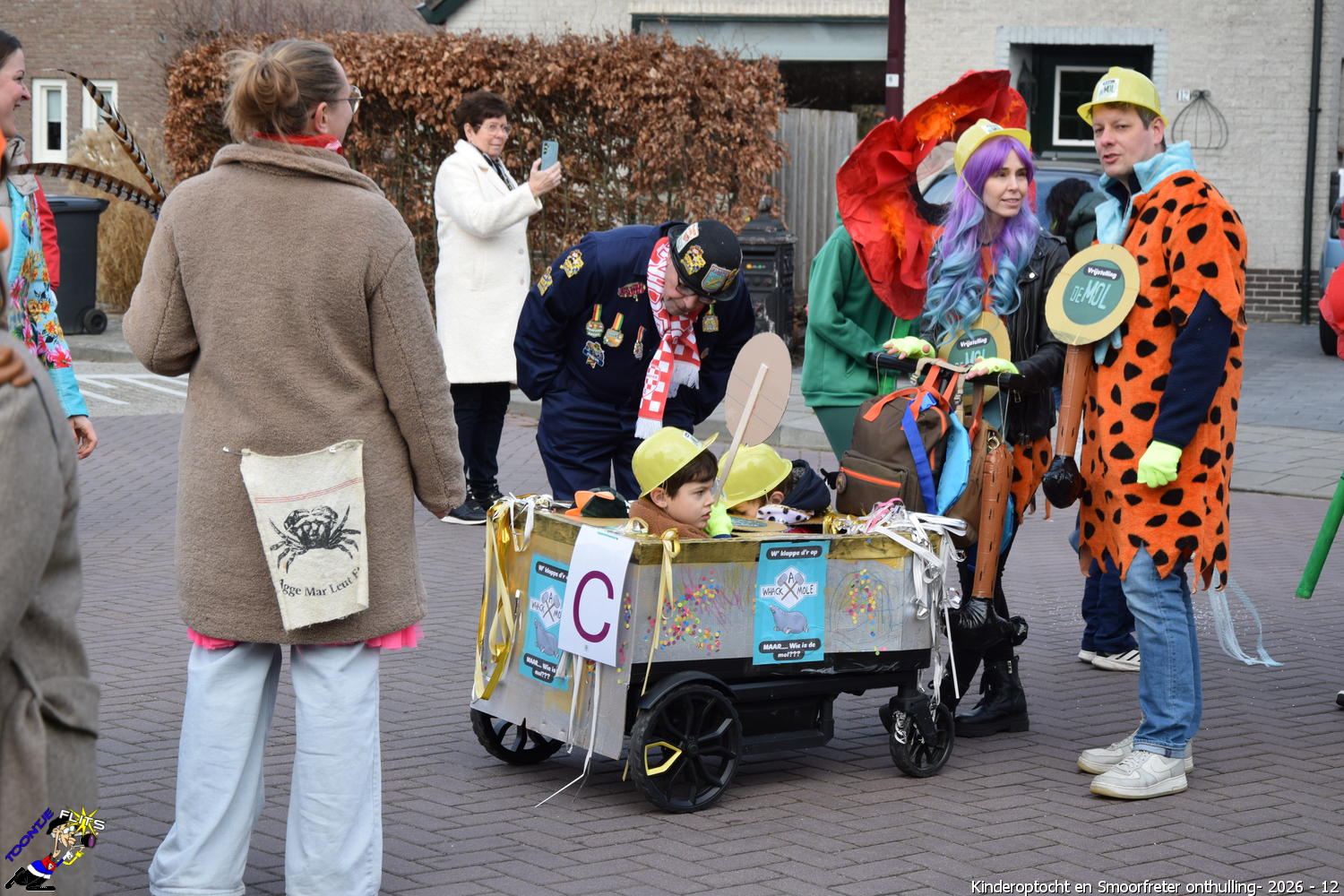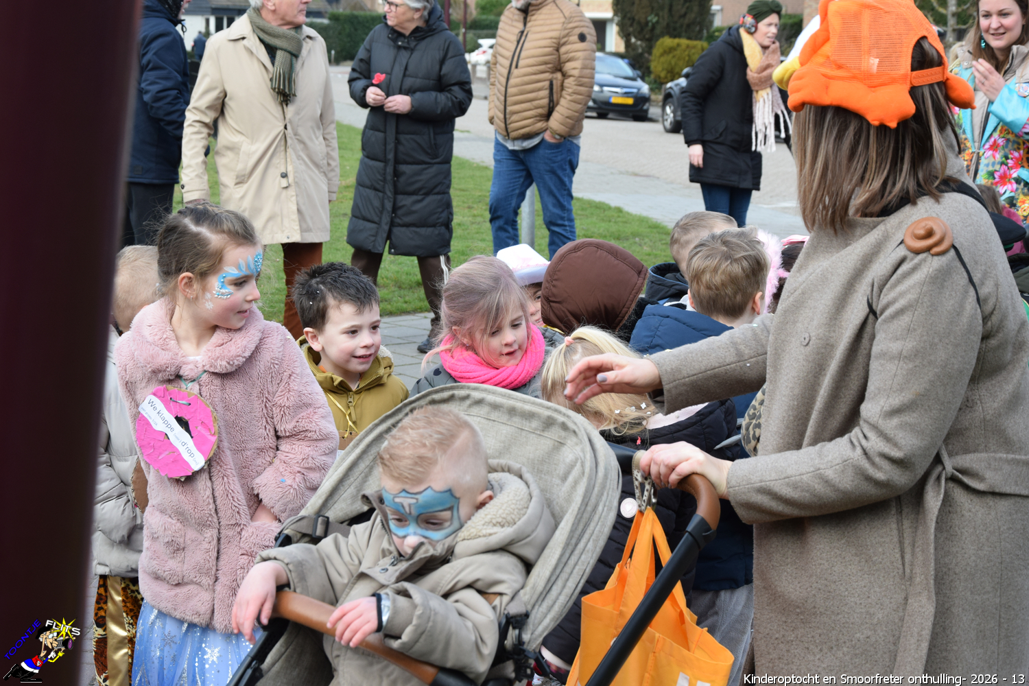 De onthulling van de Smoorfrêter is een jaarlijks terugkerende gebeurtenis in nauwe samenwerking met de lagere school, die tevens wordt gecombineerd met het carnavals schoolbal. De vrijdag voorafgaand aan het carnavalsweekend, ergens in de namiddag, vertrekt vanaf de lagere school de kinderoptocht, waarbij de kinderen hun zelfgemaakte bouwsels aan het publiek kunnen tonen. De kinderoptocht gaat, rumoerig ondersteund door carnavalsmuziek, door enkele straten van ons Smoorfrêterslaand, waarna ze aan het eind van de optocht gewoonlijk aankomen bij het dorpsplein. Hier wacht onze Smoorfrêter, die onherkenbaar is afgedekt door een groot zeil, om officieel geïnstalleerd te worden. Na wat hossen en andere dansjes wordt de Smoorfrêter ceremonieel door de Nar van zijn camouflage ontdaan, zodat hij glorieus over het plein kan uitkijken. Vanaf zijn verhoogde positie kan hij dan zijn eigen Smoorfrêterslaand aanschouwen gedurende de carnavalsdagen.