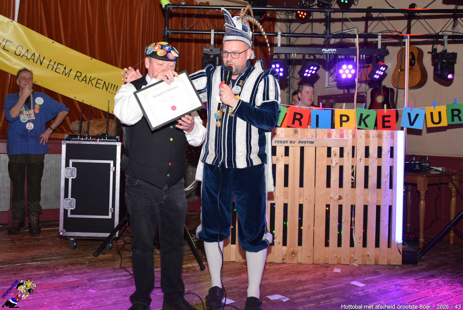 In 1994 komt Hans Hagens de Stichting versterken als raadslid. Dit is als eens eerder gebeurt namelijk 10 jaar eerder, in 1984 is hij namelijk ook één keer raadslid geweest. Tot en met 1998 want dan schakelt hij over naar de functie van Pliessie Hannes wat hij een aantal jaren vol verve uitvoert. In 2004 hangt hij zijn pliessiepak aan de wilgen en treedt hij in 2005 toe bij het bestuur als secretaris. In 2017 verandert hij zijn bestuursfunctie naar voorzitter van de club en is dan tevens grootste boer, de z.g. “oan mekoar proater”, de functie die hij tot aan dit afscheid heeft vervuld. Iedereen kent Hans en Hans kent iedereen, waar je ook komt. Hans was in de club een organisator pur sang, volhoudend, vasthoudend en deed alles met volle overtuiging. Luisteren en samenwerken was niet altijd zijn beste eigenschap waardoor nog al eens noodoplossingen nodig waren en wrevel kon ontstaan. Toch heeft Hans heel veel gedaan en voor elkaar gekregen en daar is iedereen hem zeer dankbaar voor, wat altijd zo zal blijven!