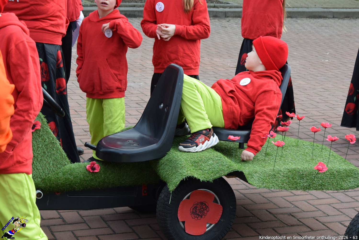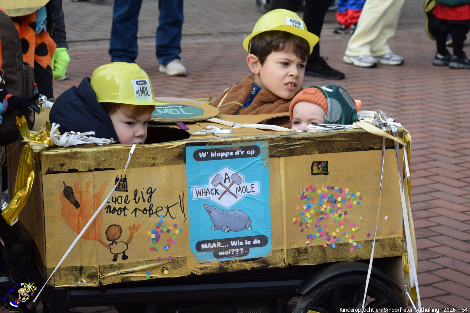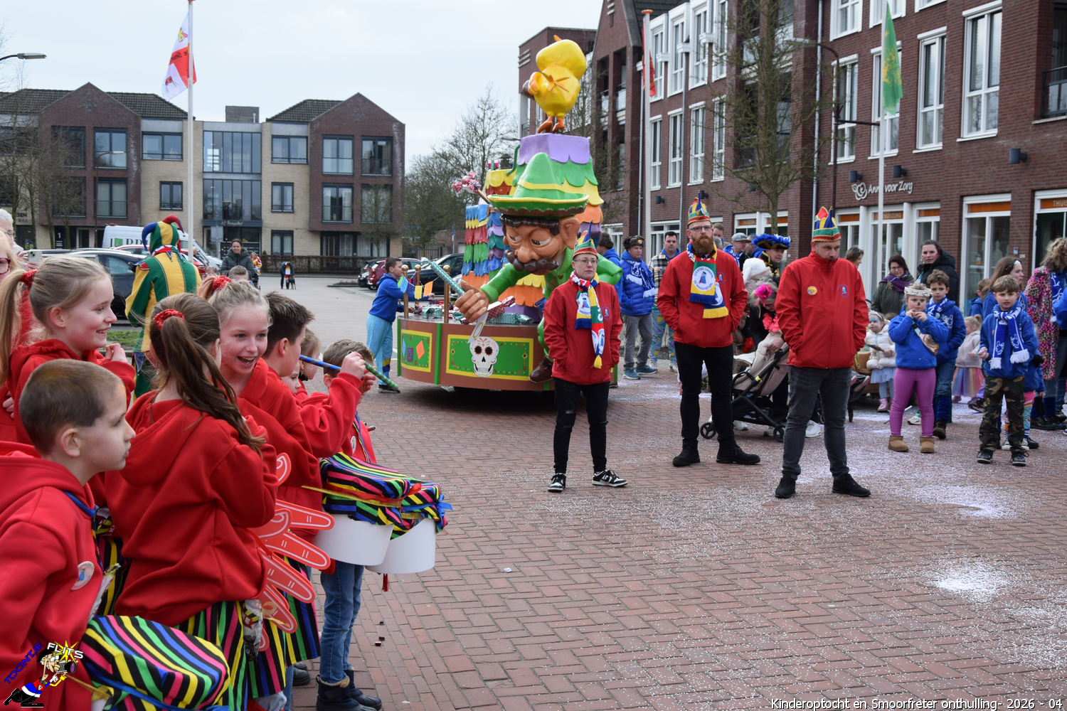 De onthulling van de Smoorfrêter is een jaarlijks terugkerende gebeurtenis in nauwe samenwerking met de lagere school, die tevens wordt gecombineerd met het carnavals schoolbal. De vrijdag voorafgaand aan het carnavalsweekend, ergens in de namiddag, vertrekt vanaf de lagere school de kinderoptocht, waarbij de kinderen hun zelfgemaakte bouwsels aan het publiek kunnen tonen. De kinderoptocht gaat, rumoerig ondersteund door carnavalsmuziek, door enkele straten van ons Smoorfrêterslaand, waarna ze aan het eind van de optocht gewoonlijk aankomen bij het dorpsplein. Hier wacht onze Smoorfrêter, die onherkenbaar is afgedekt door een groot zeil, om officieel geïnstalleerd te worden. Na wat hossen en andere dansjes wordt de Smoorfrêter ceremonieel door de Nar van zijn camouflage ontdaan, zodat hij glorieus over het plein kan uitkijken. Vanaf zijn verhoogde positie kan hij dan zijn eigen Smoorfrêterslaand aanschouwen gedurende de carnavalsdagen.
