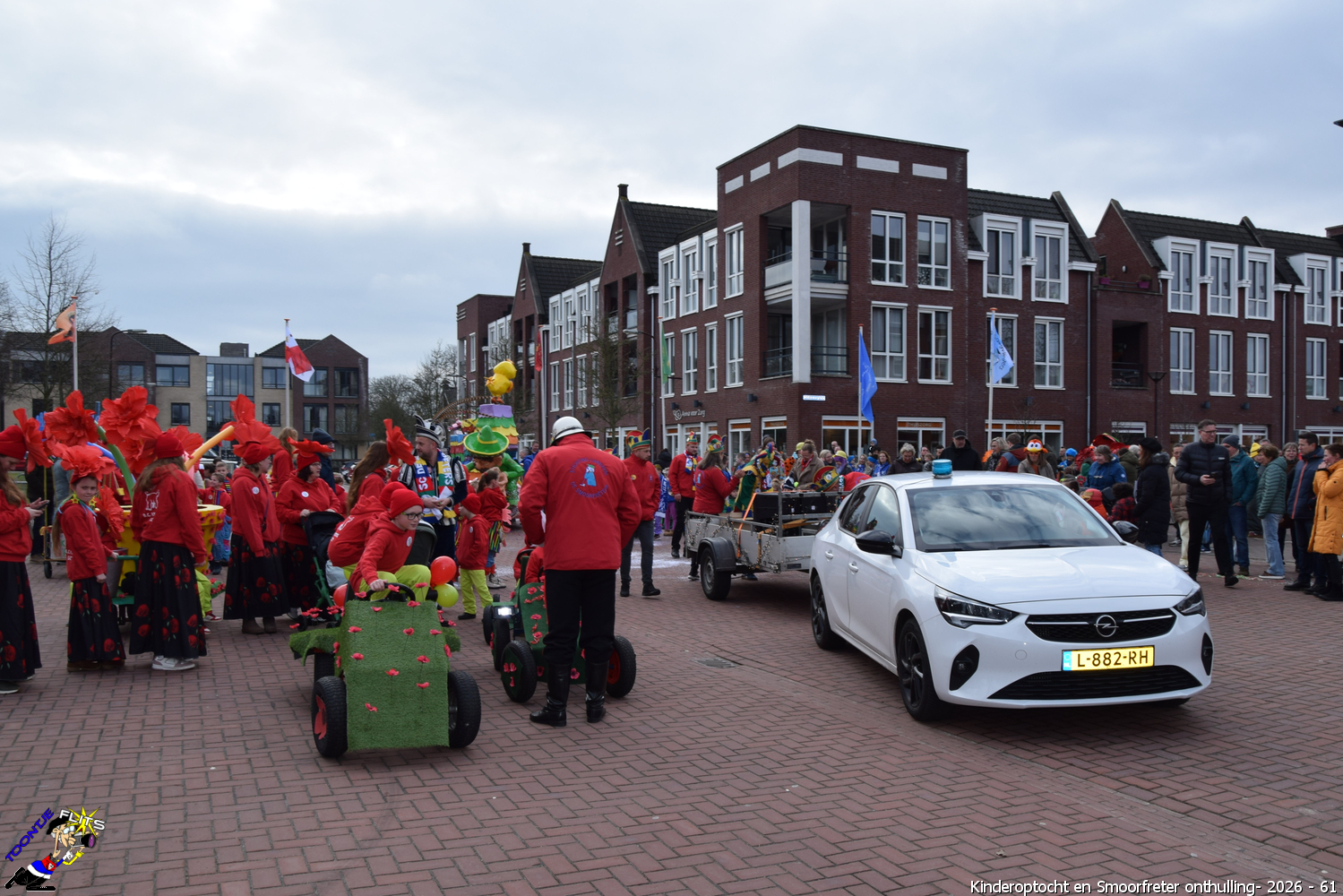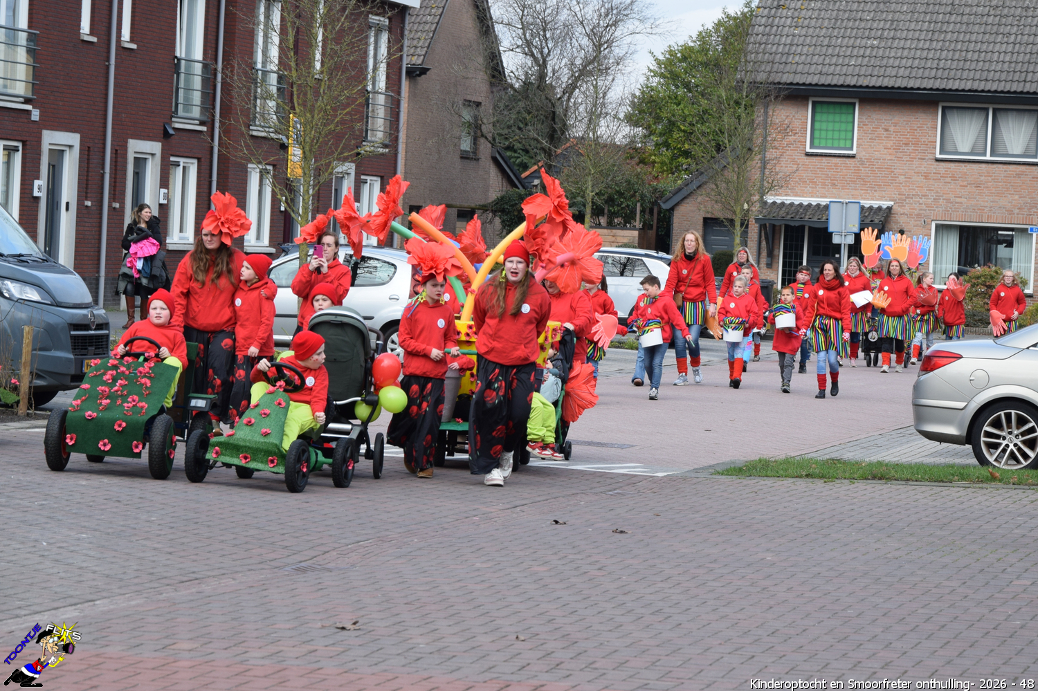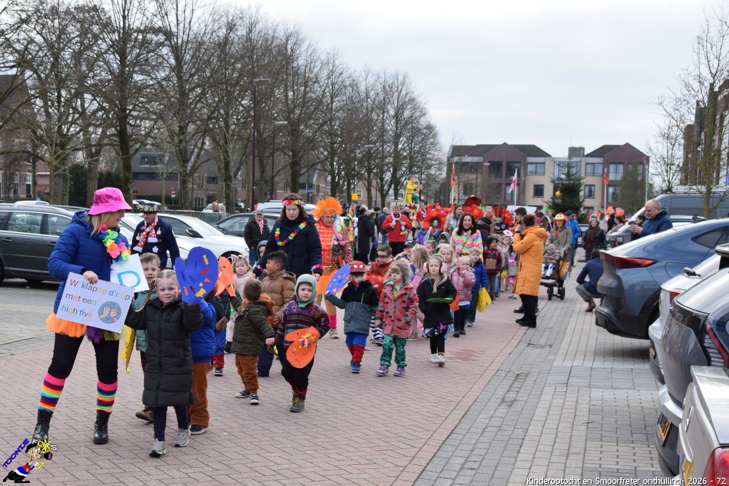 De onthulling van de Smoorfrêter is een jaarlijks terugkerende gebeurtenis in nauwe samenwerking met de lagere school, die tevens wordt gecombineerd met het carnavals schoolbal. De vrijdag voorafgaand aan het carnavalsweekend, ergens in de namiddag, vertrekt vanaf de lagere school de kinderoptocht, waarbij de kinderen hun zelfgemaakte bouwsels aan het publiek kunnen tonen. De kinderoptocht gaat, rumoerig ondersteund door carnavalsmuziek, door enkele straten van ons Smoorfrêterslaand, waarna ze aan het eind van de optocht gewoonlijk aankomen bij het dorpsplein. Hier wacht onze Smoorfrêter, die onherkenbaar is afgedekt door een groot zeil, om officieel geïnstalleerd te worden. Na wat hossen en andere dansjes wordt de Smoorfrêter ceremonieel door de Nar van zijn camouflage ontdaan, zodat hij glorieus over het plein kan uitkijken. Vanaf zijn verhoogde positie kan hij dan zijn eigen Smoorfrêterslaand aanschouwen gedurende de carnavalsdagen.