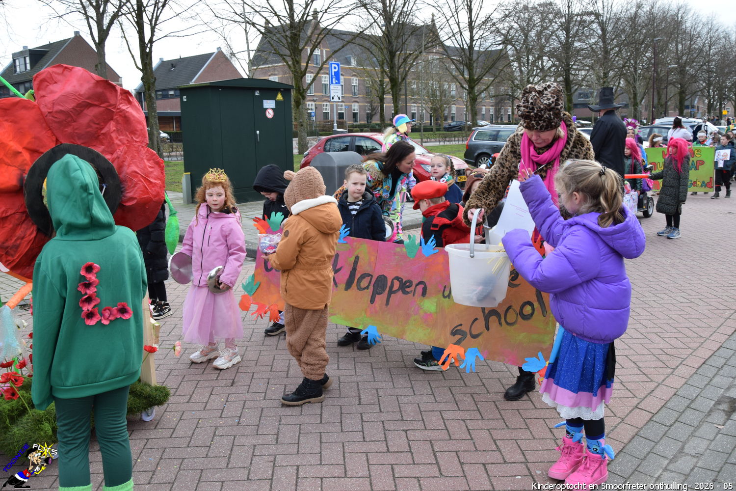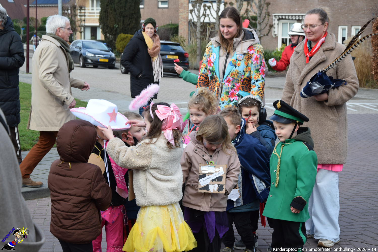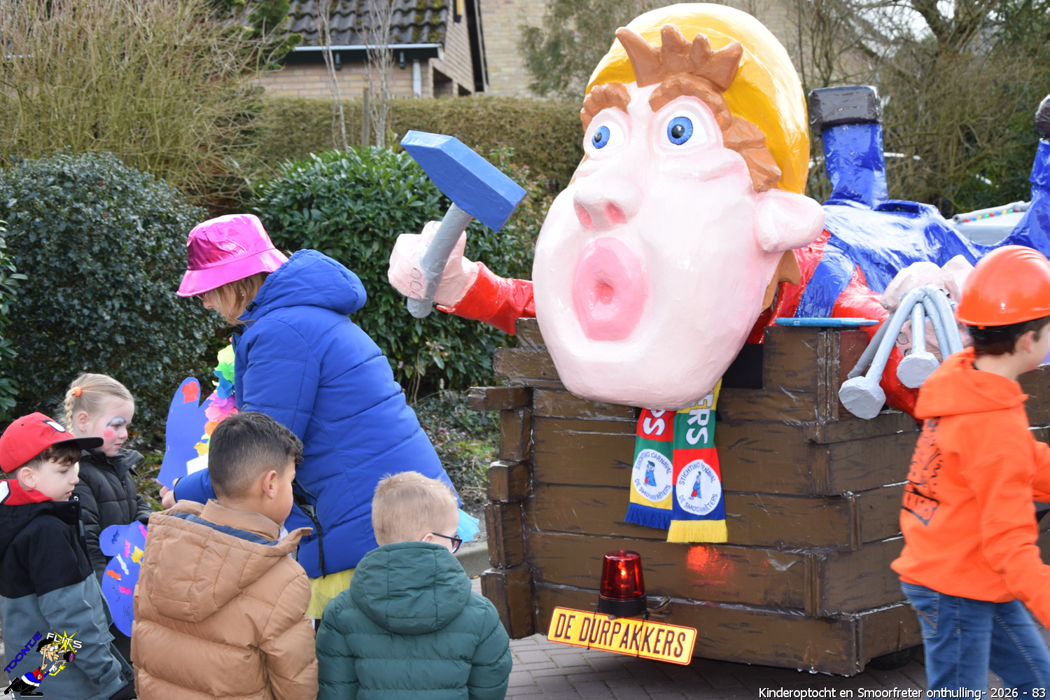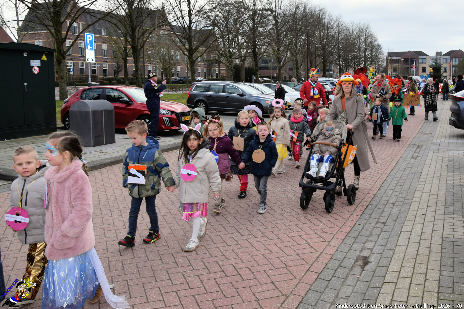 De onthulling van de Smoorfrêter is een jaarlijks terugkerende gebeurtenis in nauwe samenwerking met de lagere school, die tevens wordt gecombineerd met het carnavals schoolbal. De vrijdag voorafgaand aan het carnavalsweekend, ergens in de namiddag, vertrekt vanaf de lagere school de kinderoptocht, waarbij de kinderen hun zelfgemaakte bouwsels aan het publiek kunnen tonen. De kinderoptocht gaat, rumoerig ondersteund door carnavalsmuziek, door enkele straten van ons Smoorfrêterslaand, waarna ze aan het eind van de optocht gewoonlijk aankomen bij het dorpsplein. Hier wacht onze Smoorfrêter, die onherkenbaar is afgedekt door een groot zeil, om officieel geïnstalleerd te worden. Na wat hossen en andere dansjes wordt de Smoorfrêter ceremonieel door de Nar van zijn camouflage ontdaan, zodat hij glorieus over het plein kan uitkijken. Vanaf zijn verhoogde positie kan hij dan zijn eigen Smoorfrêterslaand aanschouwen gedurende de carnavalsdagen.