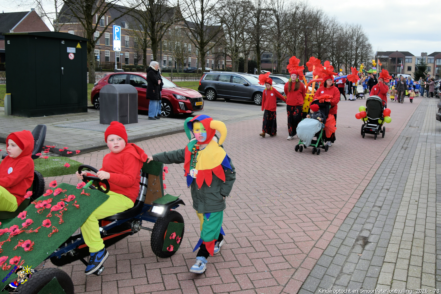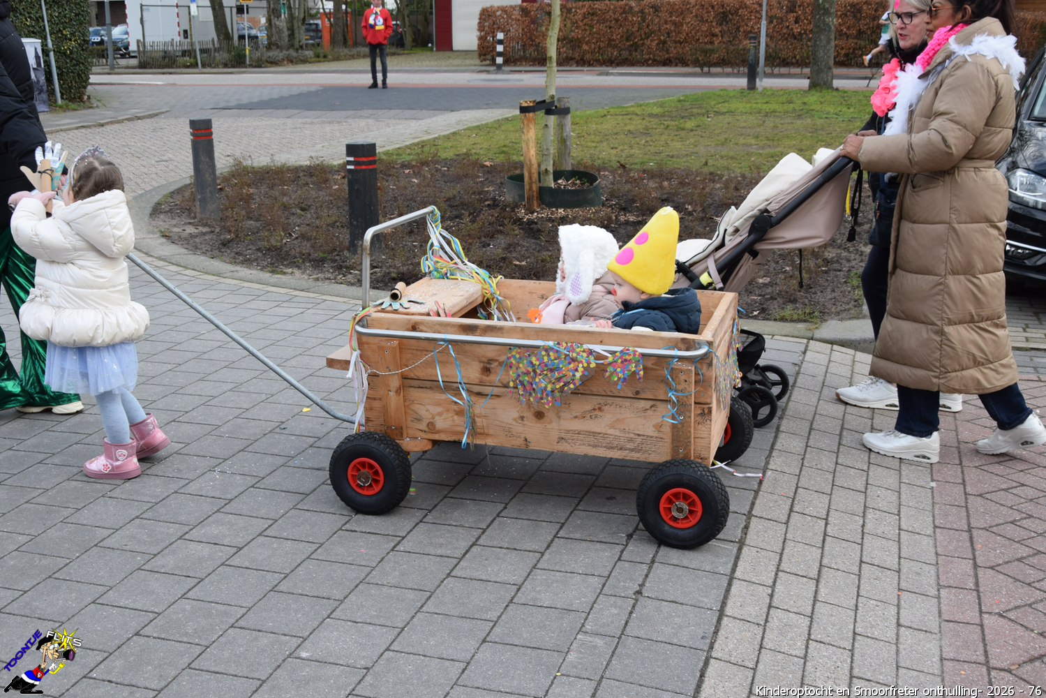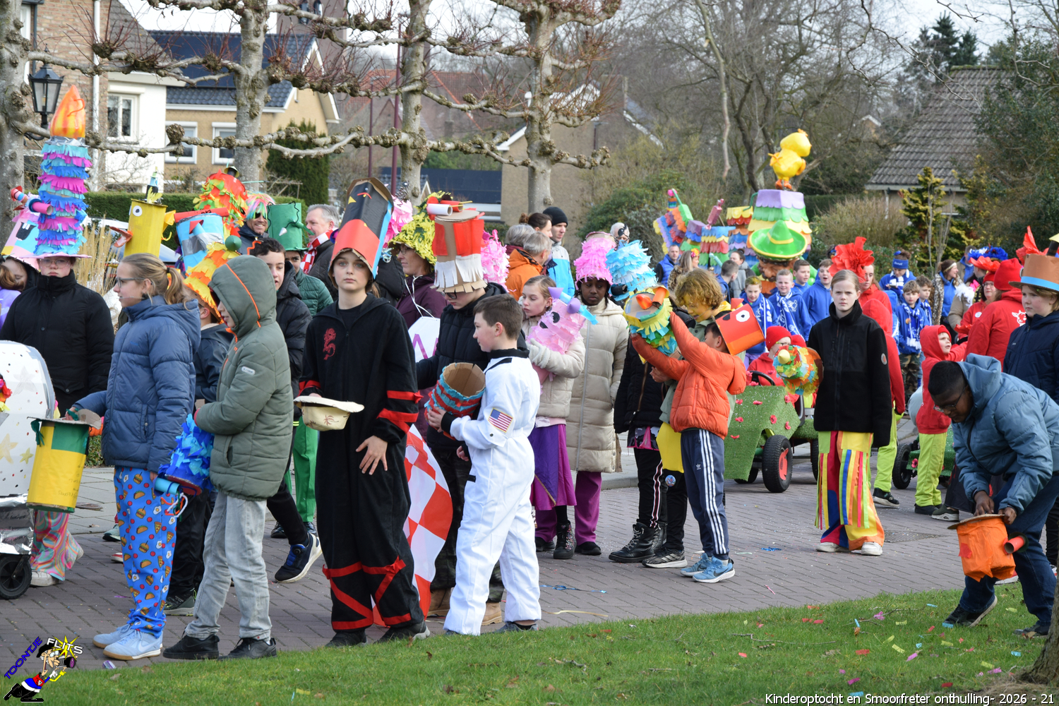 De onthulling van de Smoorfrêter is een jaarlijks terugkerende gebeurtenis in nauwe samenwerking met de lagere school, die tevens wordt gecombineerd met het carnavals schoolbal. De vrijdag voorafgaand aan het carnavalsweekend, ergens in de namiddag, vertrekt vanaf de lagere school de kinderoptocht, waarbij de kinderen hun zelfgemaakte bouwsels aan het publiek kunnen tonen. De kinderoptocht gaat, rumoerig ondersteund door carnavalsmuziek, door enkele straten van ons Smoorfrêterslaand, waarna ze aan het eind van de optocht gewoonlijk aankomen bij het dorpsplein. Hier wacht onze Smoorfrêter, die onherkenbaar is afgedekt door een groot zeil, om officieel geïnstalleerd te worden. Na wat hossen en andere dansjes wordt de Smoorfrêter ceremonieel door de Nar van zijn camouflage ontdaan, zodat hij glorieus over het plein kan uitkijken. Vanaf zijn verhoogde positie kan hij dan zijn eigen Smoorfrêterslaand aanschouwen gedurende de carnavalsdagen.