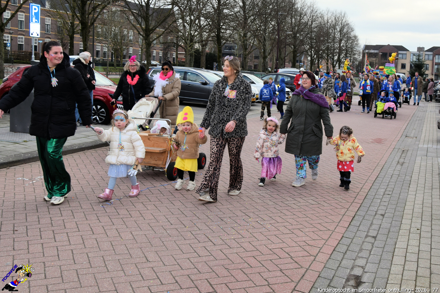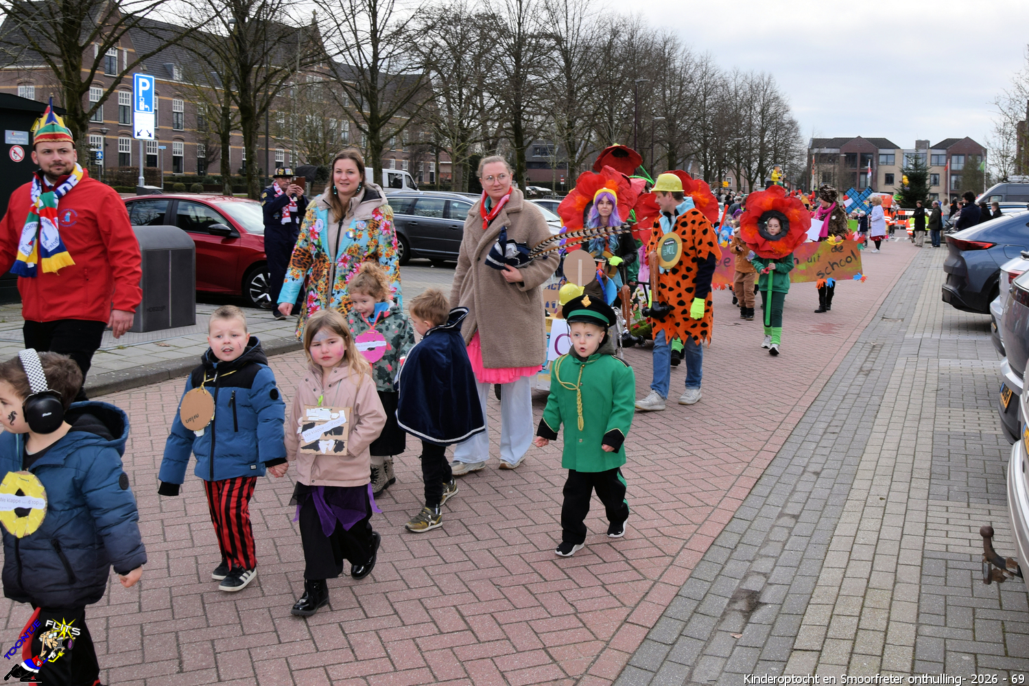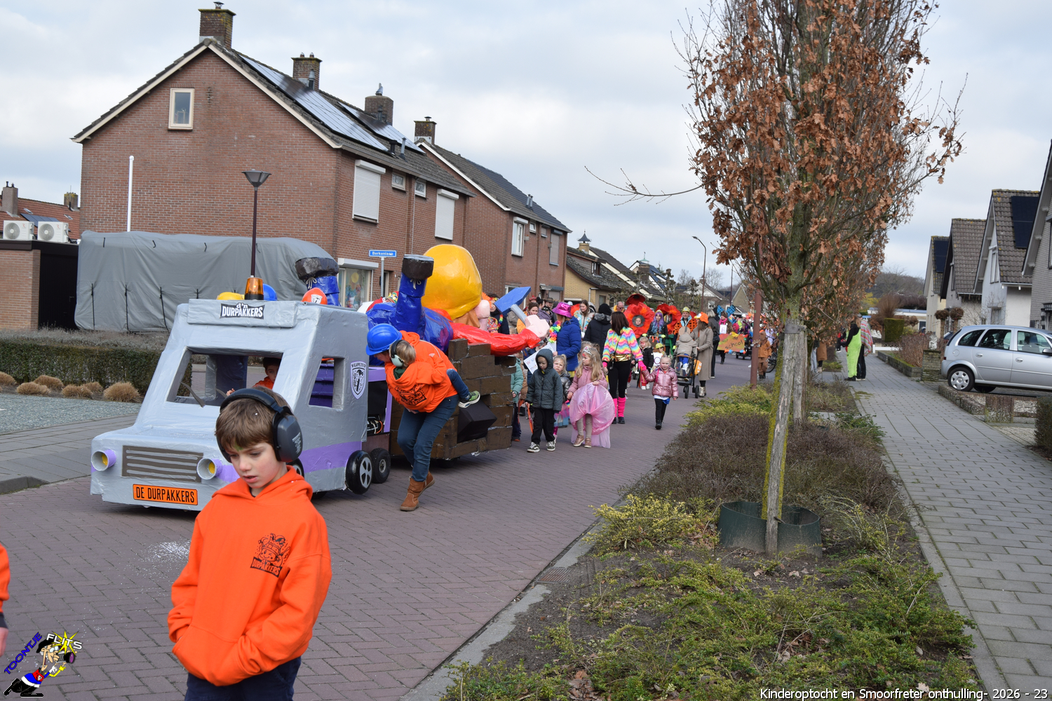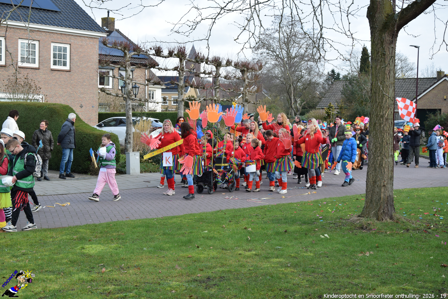 De onthulling van de Smoorfrêter is een jaarlijks terugkerende gebeurtenis in nauwe samenwerking met de lagere school, die tevens wordt gecombineerd met het carnavals schoolbal. De vrijdag voorafgaand aan het carnavalsweekend, ergens in de namiddag, vertrekt vanaf de lagere school de kinderoptocht, waarbij de kinderen hun zelfgemaakte bouwsels aan het publiek kunnen tonen. De kinderoptocht gaat, rumoerig ondersteund door carnavalsmuziek, door enkele straten van ons Smoorfrêterslaand, waarna ze aan het eind van de optocht gewoonlijk aankomen bij het dorpsplein. Hier wacht onze Smoorfrêter, die onherkenbaar is afgedekt door een groot zeil, om officieel geïnstalleerd te worden. Na wat hossen en andere dansjes wordt de Smoorfrêter ceremonieel door de Nar van zijn camouflage ontdaan, zodat hij glorieus over het plein kan uitkijken. Vanaf zijn verhoogde positie kan hij dan zijn eigen Smoorfrêterslaand aanschouwen gedurende de carnavalsdagen.